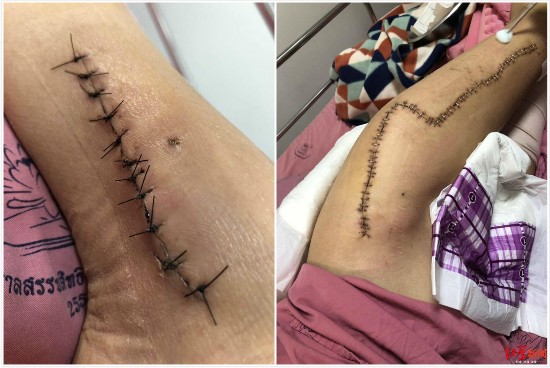 从悬崖跌落奇迹生还后,王女士虽然保住了生命,但是已经失去了生活自理能力。王女士告诉红星新闻,自从被救起,直到来泰国参加庭审之前,自己一直都在不间断接受治疗,也因为尚在治疗当中,所以还无法做伤情鉴定,目前出行都只能依赖轮椅。