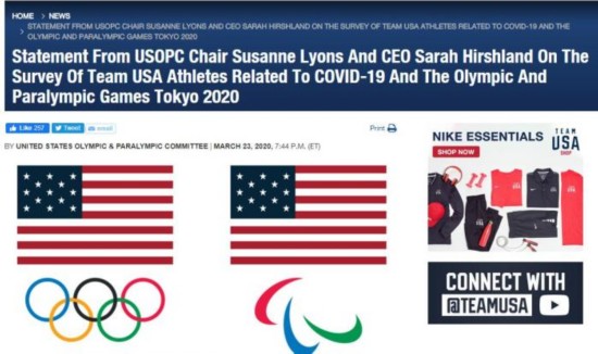 美国奥委会表示,推迟东京奥运会目前是最有希望的。“我们希望国际奥委会采取一切必要措施,确保奥运会能够在安全和公平的条件下为所有参赛者举办。我们期待反馈和指导,并随时准备支持美国队,并与国际社会充分合作。”