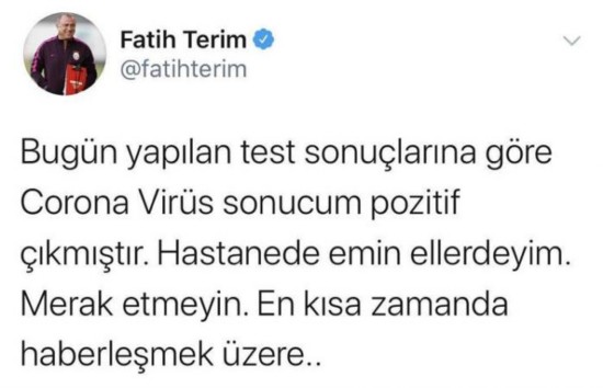 北京时间24日凌晨,加拉塔萨雷主帅特里姆通过社交媒体宣布,自己新冠病毒检测呈阳性。