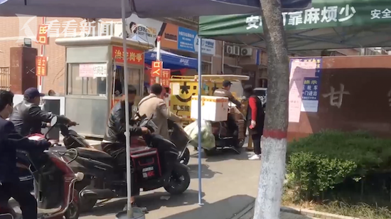 3月24日上午,甘家寨社区主任称,经甘家寨两委会研究决定,3月24日起,非本社区住的外卖车辆严禁入内,送餐取餐到门口电话联系或外卖员步行进入;本社区居住骑手,由房东带领,在社区免费办理通行证,可在上下班时间段出入。已办理50元月费的外卖骑手凭单据前往居委会退费,后续针对外卖骑手的具体管理方法,社区正在探讨商议。