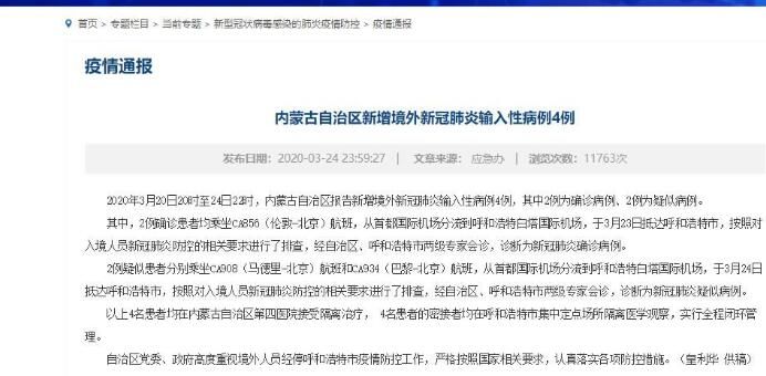 【内蒙古自治区新增境外新冠肺炎输入性病例4例】