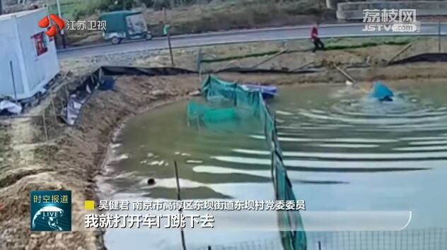 据了解,当时正在南京市高淳区东坝村驾车执勤的吴健君,亲眼看见一辆三轮电瓶车从身边经过,因车速过快直接冲进了水塘。他立刻以"百米冲刺之速"跑去救人,跳入水塘,把孔祥财拉住,奋力往回划,经过多次努力,终于把孔祥财拉上岸。因为救援及时,70岁的车主孔祥财并无大碍。