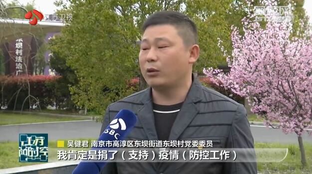 南京市高淳区东坝街道东坝村、党委委员吴健君说:“作为一名党员,现在疫情当前,我肯定是捐了支持疫情防控工作。”