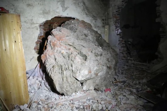 消防救援人员到达现场后,经现场侦查,并与当地政府工作人员了解,该民房位于一座山体脚下,巨石从山上滚落,据初步估算巨石近20吨重,巨石先后砸穿民房的两堵墙,直接滚到民房的一个房间内,不偏不移正好砸中床,而当时3名儿童正在床上玩平板电脑。