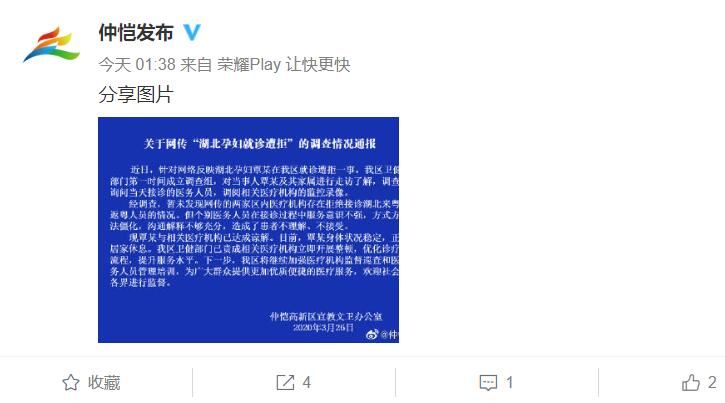 荔枝新闻讯 27日凌晨,广东省惠州仲恺高新区新闻中心在其官博就网传“湖北孕妇就诊遭拒”一事发布情况通报,通报称,个别医务人员在接诊过程中服务意识不强,方式方法僵化。目前,当事人已与相关医疗机构达成谅解。