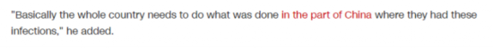 “基本上,整个国家都要采取中国那些出现感染(病例)地区之前所采取的那些措施。”盖茨说道。