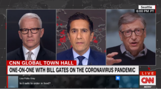 报道称,盖茨当晚参加CNN《全球市政厅》节目,讨论新冠病毒疫情以及所需采取的措施。“这是一个噩梦般的场景,”他在谈及新冠病毒大流行时形容道。
