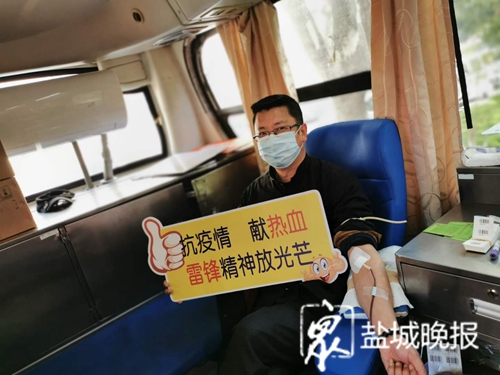 3月20日上午8时许,为确保新冠肺炎疫情防控期间医疗机构临床用血需要,盐都区机关干部、企事业单位献血志愿者,响应区红十字会倡议,来到区卫健委献血点,在工作人员的引导下,经过体温测量、洗手消毒、填写登记表、血压检测和采血检验合格后,登上献血车,在彼此相隔1米的座位上撸袖献血。今年53岁的盐都区教育局工作人员刘潇春就是其中一位。