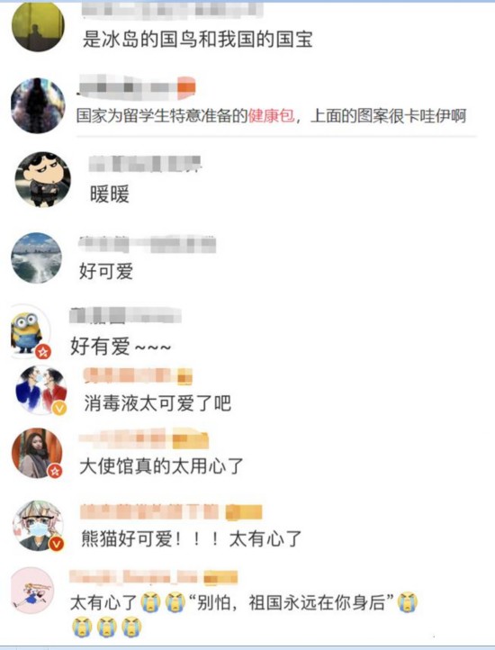 中国驻冰岛大使馆为留学生准备的“健康包”被网友赞“可爱”“有爱”“有心了”。