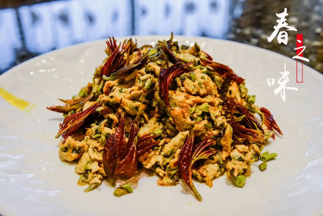 香椿被称为“树上蔬菜”,它多少是有诗意的,毕竟是要掐出那新绿最尖头的地方,有种以小博大的灵动和耐人回味。每年春季谷雨前后,香椿发的嫩芽可做成各种菜肴。香椿炒蛋是一道以香椿、鸡蛋为主材的家常菜肴,一口鸡蛋包裹着椿芽,嚼着满嘴都是春的味道,让人难以忘怀。