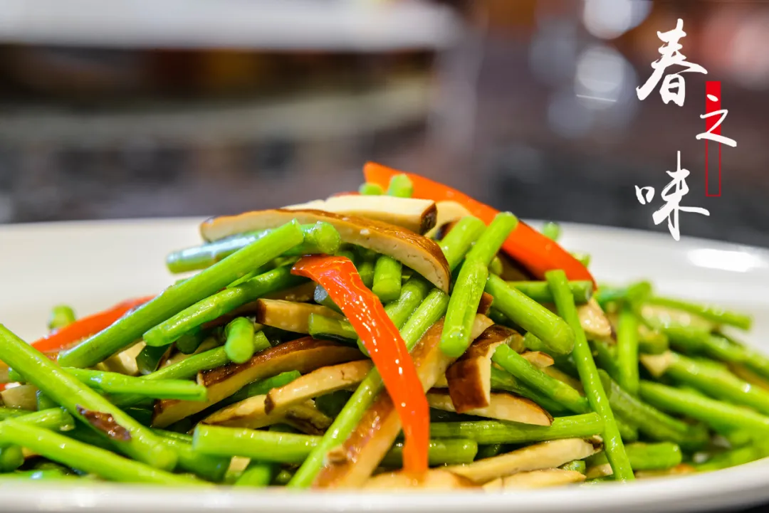 春笋、香椿、马兰头,还有芦蒿,每当享用这些大自然赋予我们的春季时令菜时,闻一下都是大自然的清新气息,青青脆脆的芦蒿嫩茎,鲜香韧糯的豆腐干丝,加一点点盐和生抽大火快炒,尝一口满是春天的新鲜味道,仿佛瞬间春风拂面。