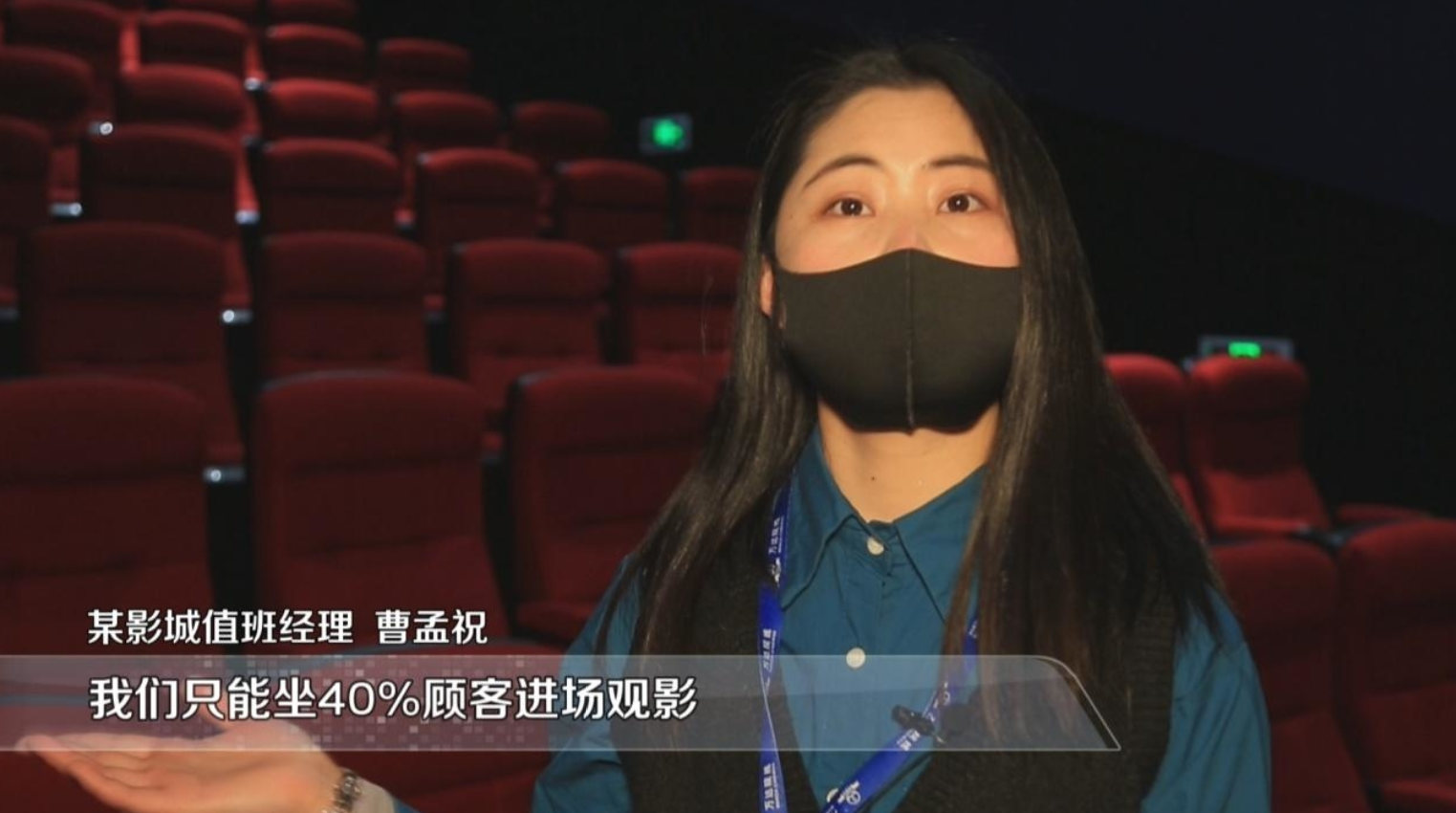 某影城值班经理 曹孟祝:“正式开业,像这么大的一个厅,一般200多个人的座位,我们只能坐40%进场观影,一般都是前后隔一米,中间空一排,然后前面坐人,后面空着。然后中间是空两个座位坐一个人。所以一个厅下来的话,才能坐40%的顾客。”