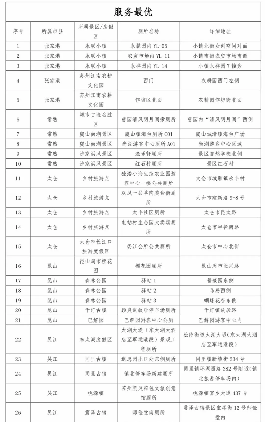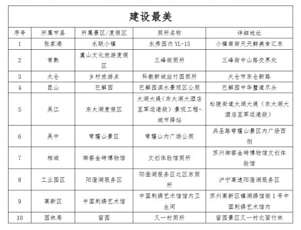 为全面提升旅游厕所的建设、管理和精细化服务水平,共同营造整洁、优美、文明的如厕环境,苏州从2017年开始,由市容市政部门和旅游部门共同组织“建设最美”“服务最优”厕所评选工作。