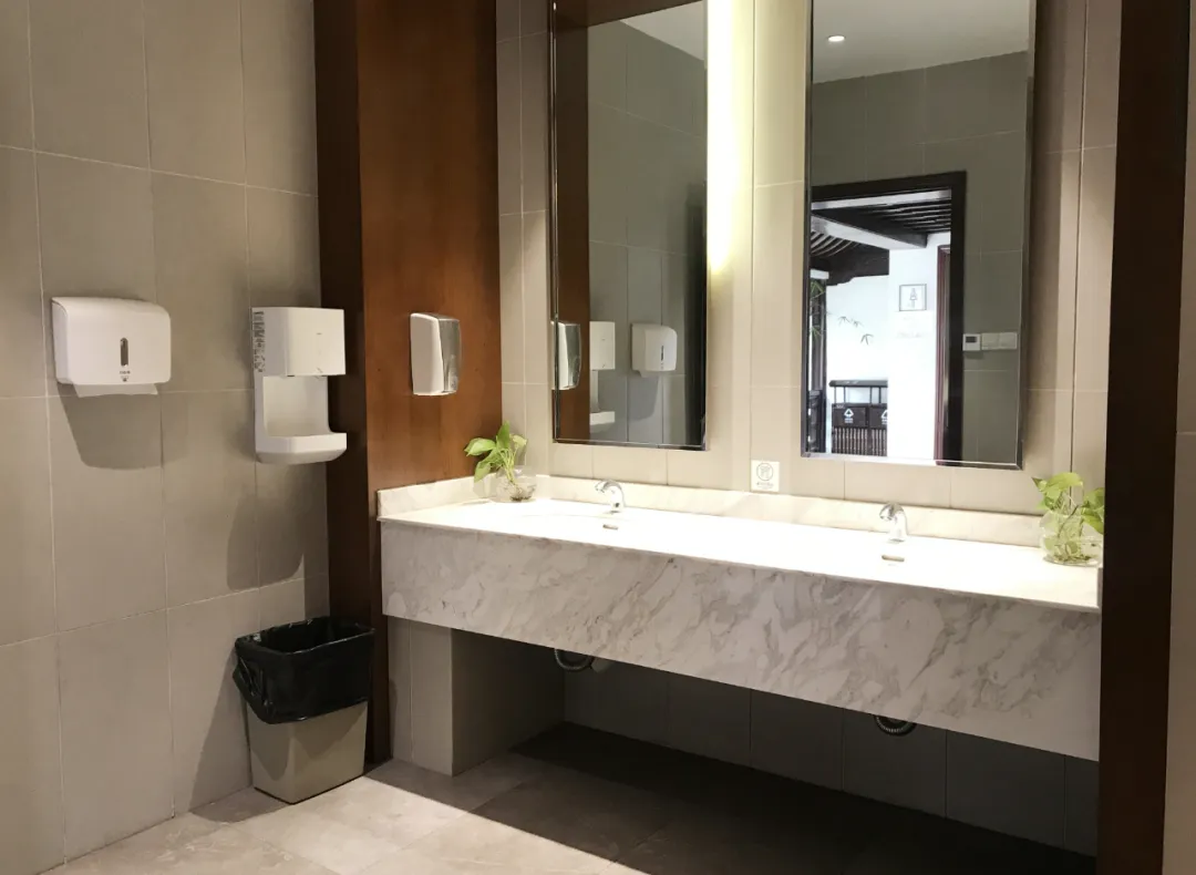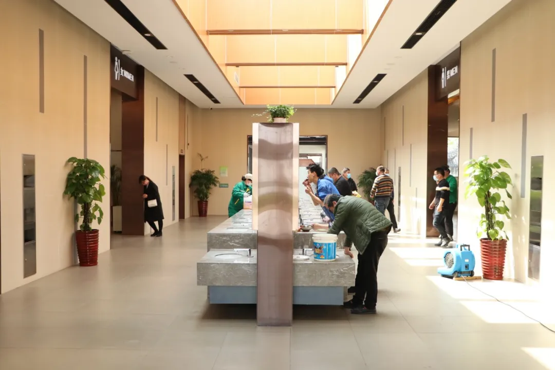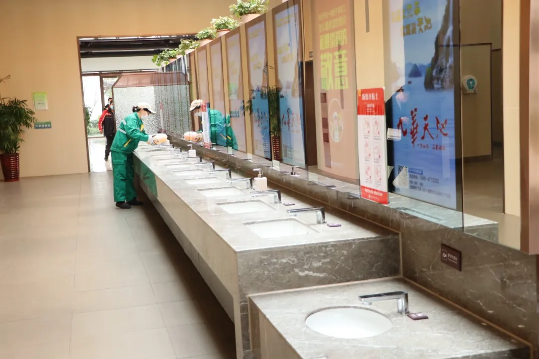 以人为本,强化服务理念,洗手池设计上根据游客年龄结构分高低等级设计,满足广大游客的使用需求;景区海纳百川,接纳五湖宾朋,中英日韩四国语言的温馨提醒满足不同国籍游客对标识标牌的认知;事异则备变,保洁员发挥主观能动性根据游客量的多寡增减即时的保洁频率,时刻把清洁净爽的如厕场所提供给游客;时下,新冠疫情虽有所缓解,但景区卫生间人流量大,相对密封的环境更容易滋生细菌,传递病毒,为此保洁员每天定时定点杀菌消毒保障游客生命安全。
