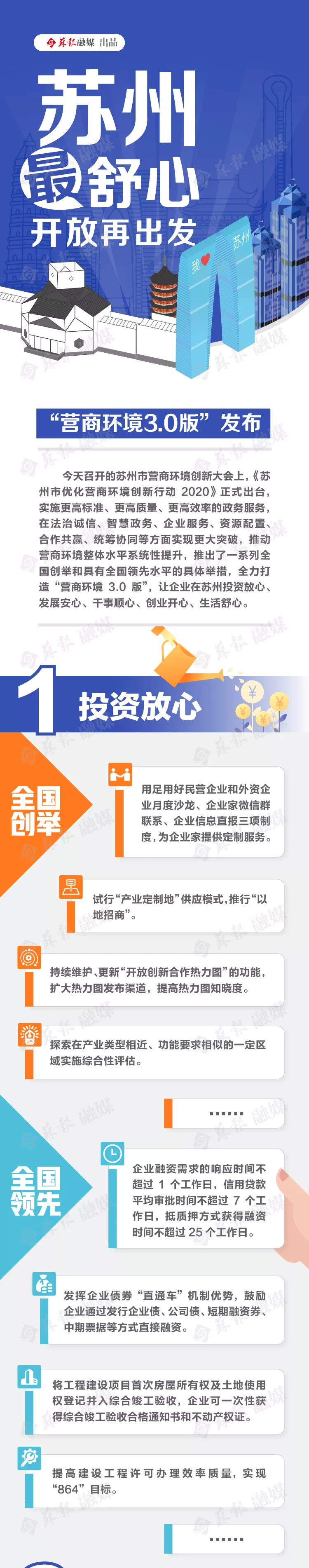 在今天召开的苏州市营商环境创新大会上,苏州“营商环境3.0版”——《苏州市优化营商环境创新行动2020》正式出台。