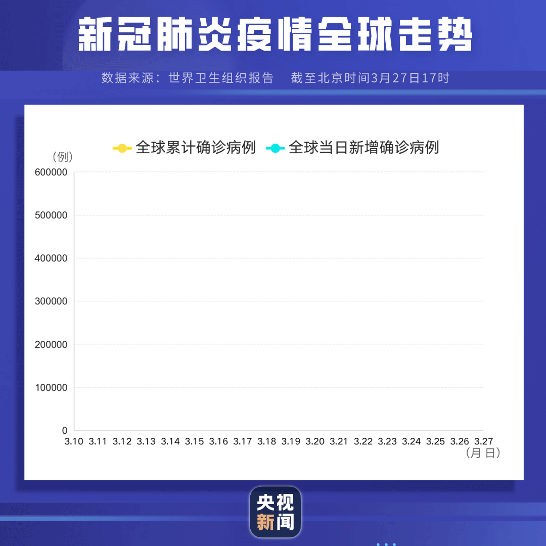 世卫组织最新报告数据显示,截至欧洲中部时间3月27日10时(北京时间3月27日17时),全球确诊新冠肺炎病例509164例。这距离3月25日世卫组织报告全球新冠肺炎确诊病例累计超40万例,仅过去2天!