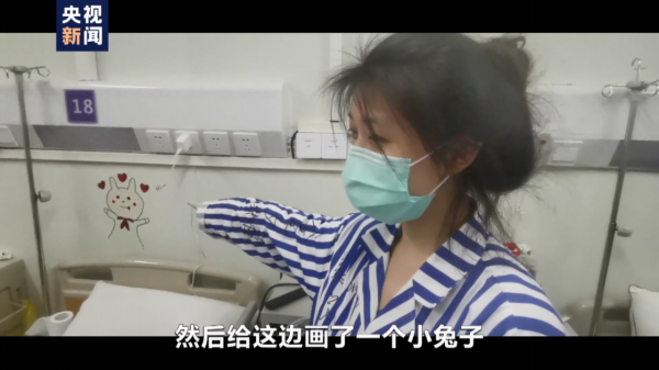 △韩大夫因防护服上的“湖北姑爷”上了墙