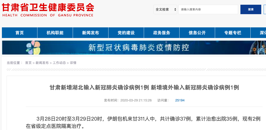 荔枝新闻讯 据兰州市卫生健康委员会网站消息,2020年3月29日,甘肃省新冠肺炎疫情联防联控工作领导小组办公室确认,兰州市七里河区新增1例湖北输入新冠肺炎病例。现将新增确诊病例相关信息通告如下: