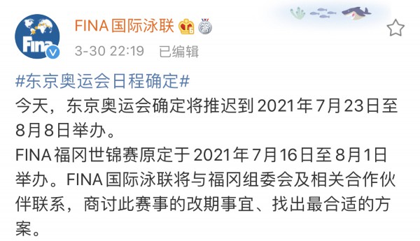 正所谓牵一发而动全身,随着东京奥运会举办时间尘埃落定,包括世界田联、世界羽联和国际泳联在内的诸多国际单项体育联合会都相继表态,或延期原定于明年举行的重大赛事、如田径世锦赛、游泳世锦赛等,或将进一步商讨奥运资格选拔的应对之策。
