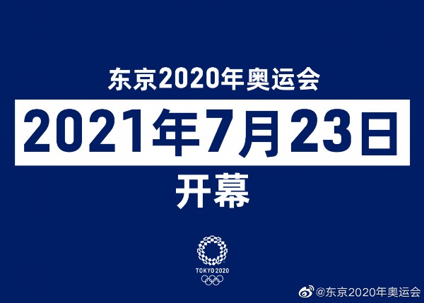 东京奥运会确定将于2021年7月23日开幕。图片来源:东京奥运会官方微博