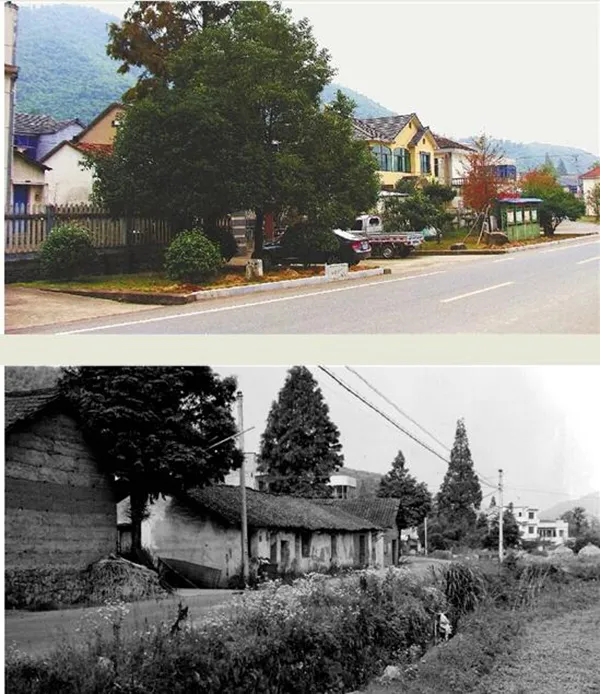 以前余村有不少小平房,土墙黑瓦;现在,村里全是两三层楼的小洋房。(图片来源:浙江在线)
