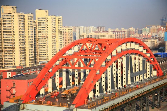 “一桥飞架东西。”北京日报客户端记者从施工方中铁六局最新获悉,由其承建的丰台火车站改建配套工程丰台特大桥,于3月31日顺利将拱桥顶推至设计桥位,7天后即将成功跨越京沪铁路和西四环。