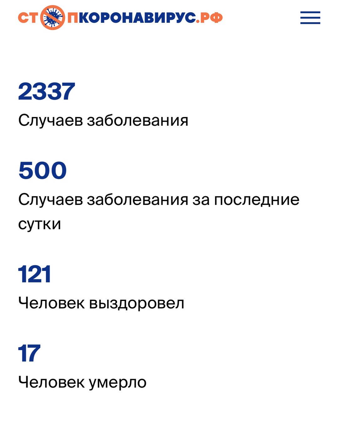 据俄罗斯新冠病毒防疫官网消息,截至3月31日,俄罗斯境内共确诊新冠肺炎感染病例2337例,单日新增500例。累计治愈病例共121例,死亡17例。另据俄联邦消费者权益保护和公益监督局消息,全俄已进行了53.7万次核酸检测,目前有20.2万人在进行医学观察。