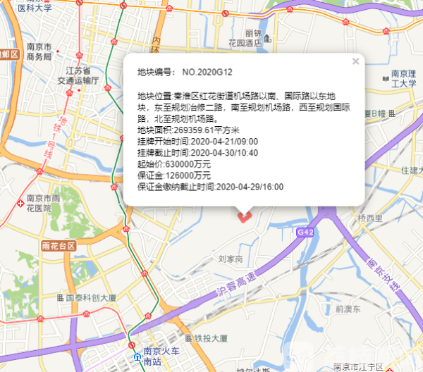 南部新城G12地块(秦淮区红花街道机场路以南、国际路以东地块),东至规划冶修二路,南至规划机场路,西至规划国际路,北至规划机场路。总用地面积269359.61㎡,地上出让面积180576.96㎡,地下出让面积88782.65㎡,用地性质为商办混合用地、商住混合用地、二类居住用地,综合容积3.50,限高150米。起拍总价63亿,最高限价91亿元,竞买保证金12.6亿元。
