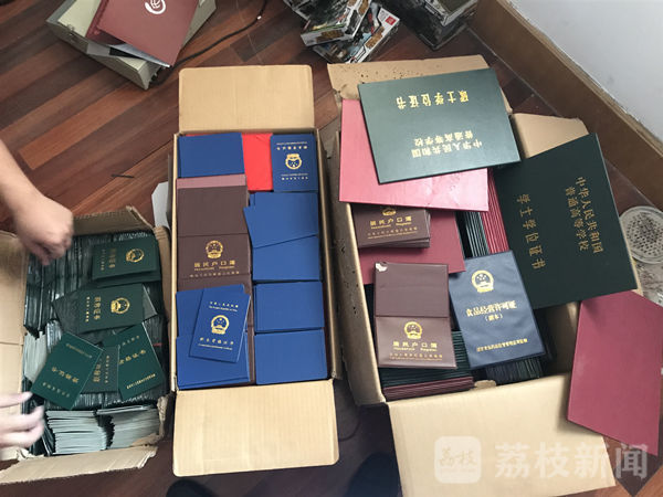 民警向记者介绍,2019年,章某共收取“好处费”162万余元,其中30多万元被用于填补2018年退费的“窟窿”,其余则用于支付假证费用及其个人生活开销,打赏主播就花了130多万元。根据线索,武进警方又顺藤摸瓜,于2019年9月20日将涉嫌伪造国家机关证件罪的李某夫妇抓获,起获各类假印章400余枚,各类假证封皮、空白假证内页数千余份。经查,被抓前3年间,李某夫妇通过伪造证件共计非法牟利数万元。