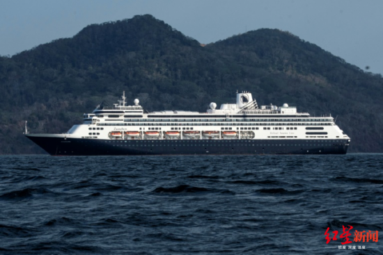 ▲3月27日,停靠在巴拿马海域的“赞丹”号邮轮 图片来源:法新社