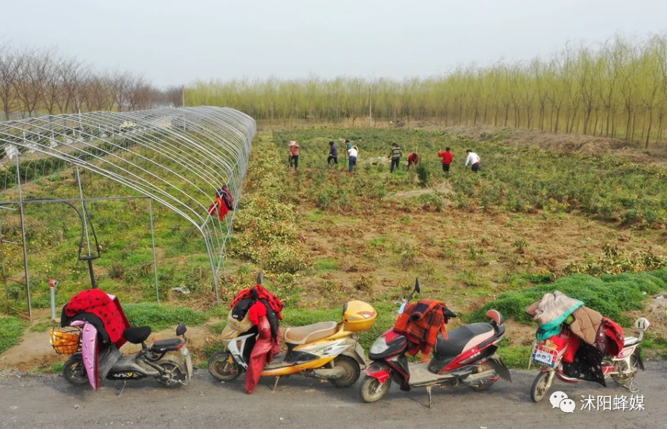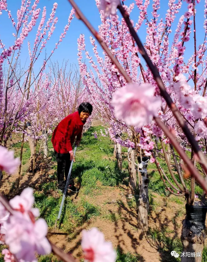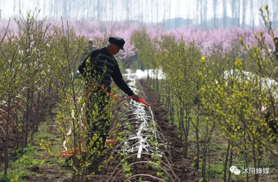 桑墟镇二兴村榆叶梅种植户在进行田间管理