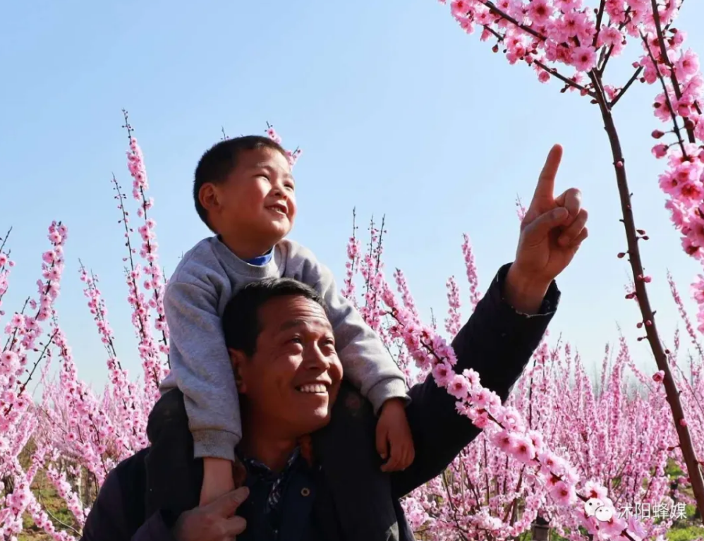 桑墟镇农民看着自家生长旺盛的榆叶梅喜笑颜开