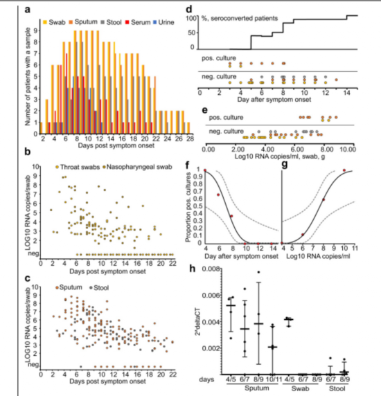 研究所用样本是来自德国慕尼黑一家医院的9名成年患者,症状都相对较轻,接受了轻微上呼吸道症状治疗。研究人员在临床过程中采集患者咽喉和肺部样本、痰(呼吸道的粘液)和粪便、血液和尿液进行了分析。