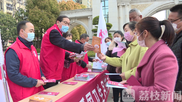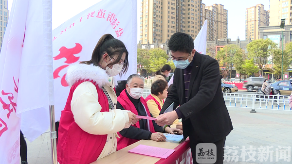 在盐城市盐都区恒大名都小区,盐城市文明巡访团的巡访员们和盐都区志愿者正在向过往群众发放健康知识宣传册以及爱国卫生运动动员倡议书,并就大家重点咨询的健康生活理念、传染病防控知识和“公筷公勺”文明用餐等健康生活行为一一解答。