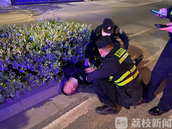 4月2日晚上11点多,特警武装巡逻二大队民警巡逻至黄山路与江山大街路口附近时,发现花坛边有一男子倒地不起,民警立即下车查看,发现该男子脸色惨白,浑身酒气,右手手背有擦伤。