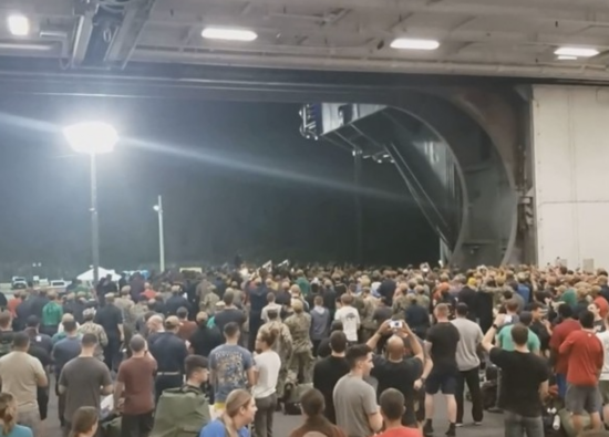 海外网4月4日消息,日前写信向美国海军求援的“西奥多·罗斯福”号航母舰长3日被解雇,当事人布雷特·克罗泽最后一次离开“罗斯福号”时获得了大批船员送别。目前,“罗斯福号”舰上有137名船员确诊感染新冠肺炎。