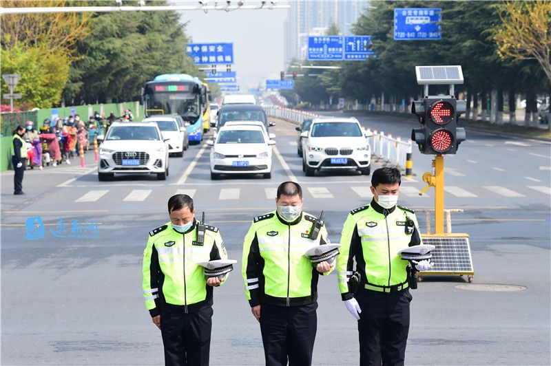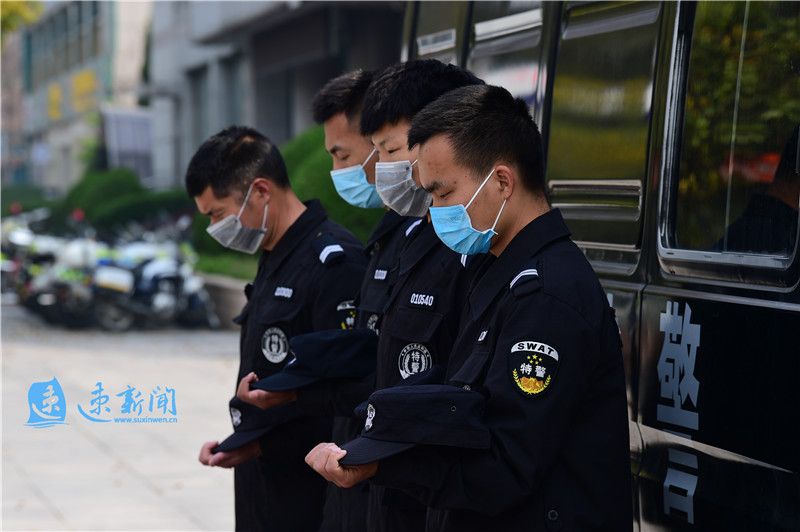 在市区发展大道与洪泽湖路交叉口,宿迁市交警支队二大队值班民警郑波、赵东风、施一川在路口摘帽默哀。路口执勤特警、行人纷纷驻足默哀,过往驾驶员也主动停车鸣笛。