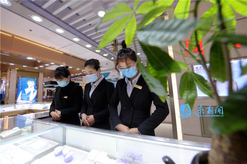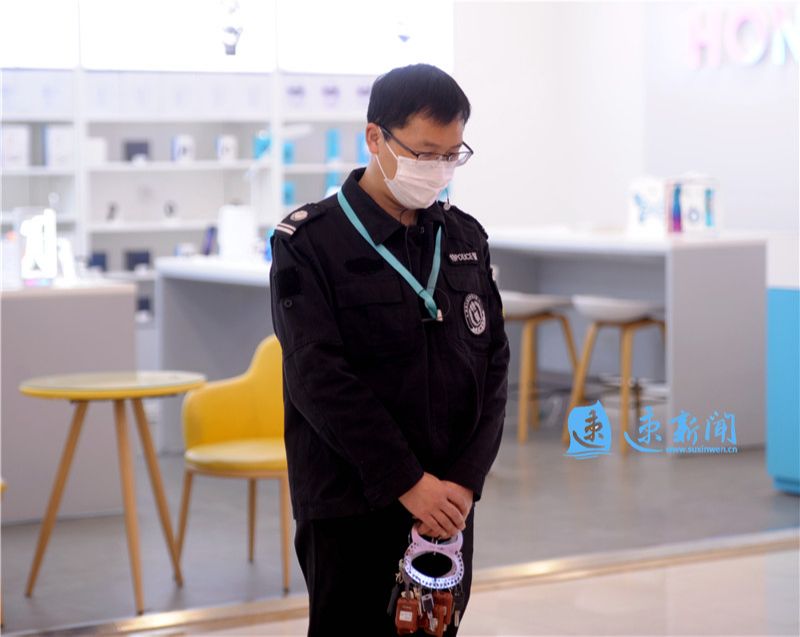在市区宝龙城市广场,商场工作人员、售货员、快递小哥等听到防空警报鸣响后,纷纷低头默哀。