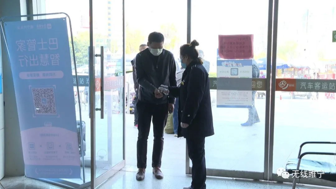 昨日(4月3日)上午,记者在睢宁汽车客运站看到,旅客进站需要进行体温测量、身份证实名信息登记等流程。