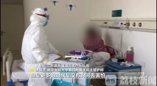 南京医科大学第四附属医院主管护师,也是江苏首批援湖北医疗队的一名队员李如芝说:“刚到武汉的时候,没有时间多想,只想着去帮助更多需要帮助的人,为病人争取生存下来的希望。”