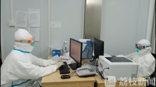 上午11点,南京市公共卫生医疗中心隔离病区,护士们正在配水,给患者送餐。感染一科主治医师程健正忙着更新患者的病情信息。“我们有7个临床医生,一个检验科医生,一个影像科医生,另外还有12名护士,都在我们整个病区,大家在轮班。”程健介绍。