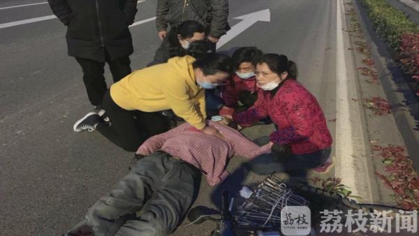 张莉告诉记者,当时她们车子行进到省道336线与瑞江路交界处附近,看到一辆黄色的车停在隔离带上,周边都是碎玻璃,再往前开看到一个电瓶车驾驶员趴在电瓶车上。出于职业本能,张莉立即下车查看。在连喊几声也没有任何回应后,她便在路人的协助下对伤者进行心肺复苏,一直等到救护车到来,她向急救医生交代完救助情况后便默默离开了。
