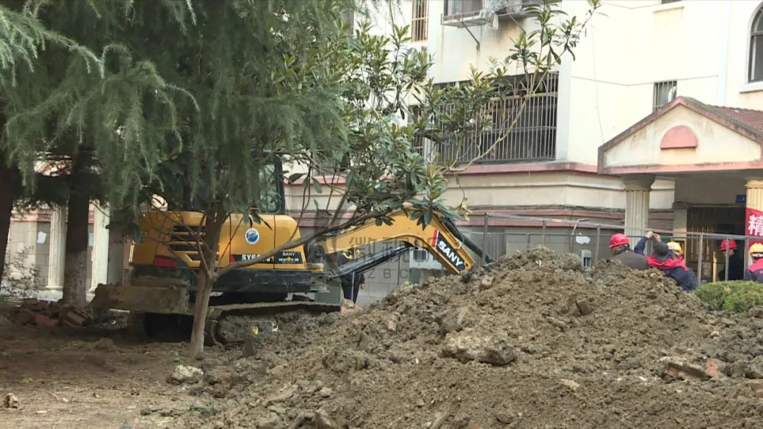 4月2日上午,在市区莲花二区39号楼2单元,工人们已经开挖基坑。