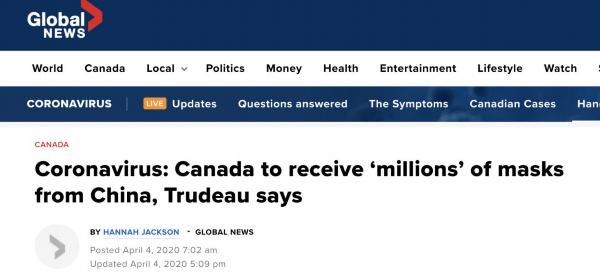 此前,特鲁多因为美国禁止口罩出口加拿大,生了一肚子气。