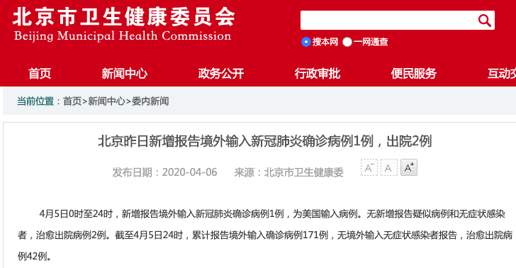 北京卫健委官网截图