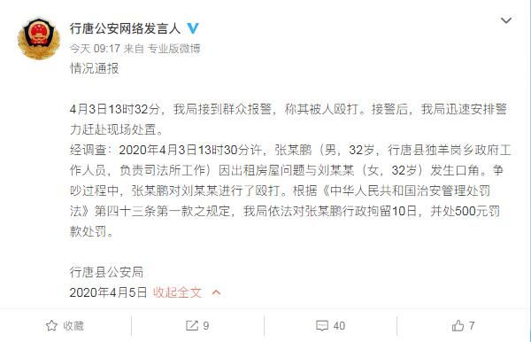 荔枝新闻讯 6日,河北省行唐县公安局在其官方微博发布情况通报。以下为全文: