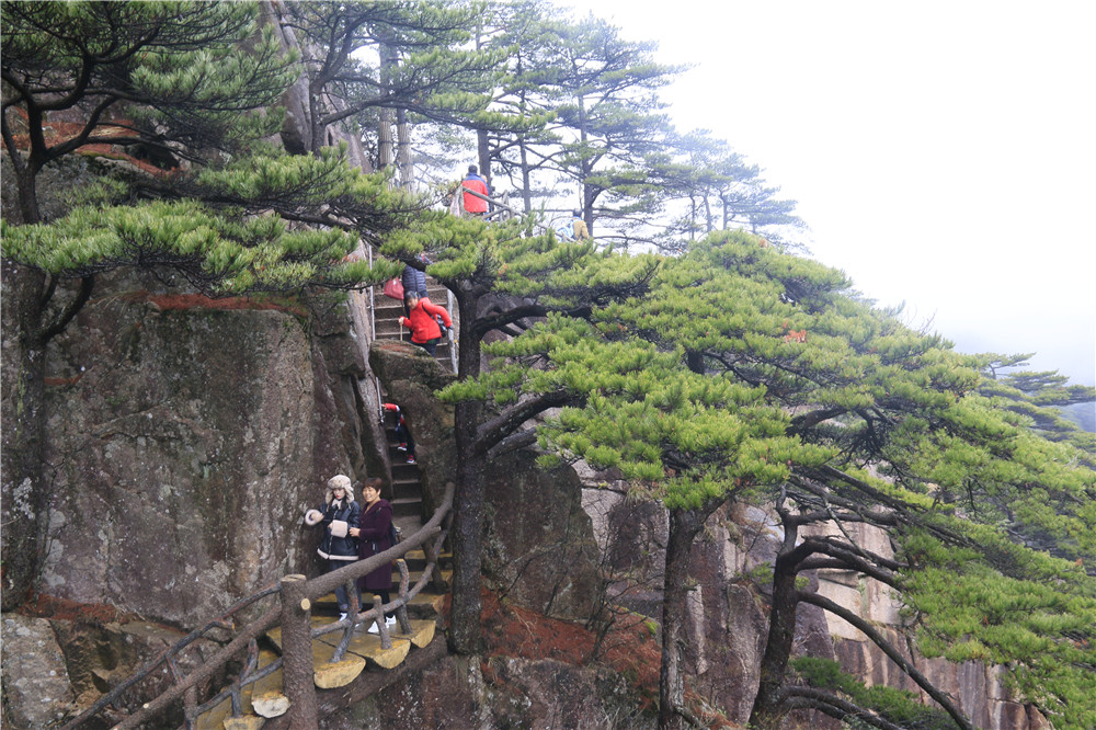 4月6日9:30,游客在攀登黄山莲花峰 刘维刚 摄