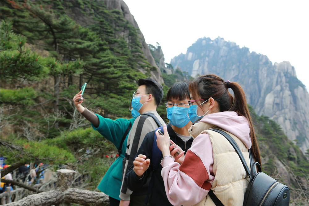 4月6日上午9:40,游客在黄山玉屏景区游览 张涛 摄
