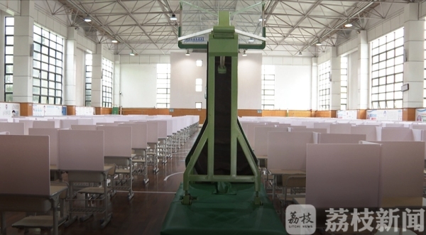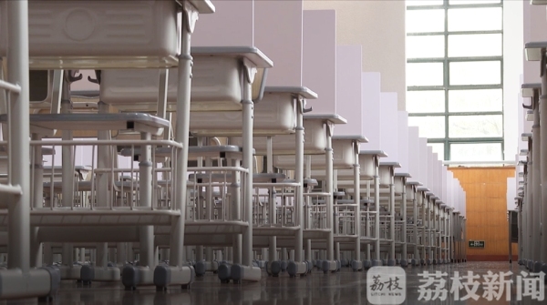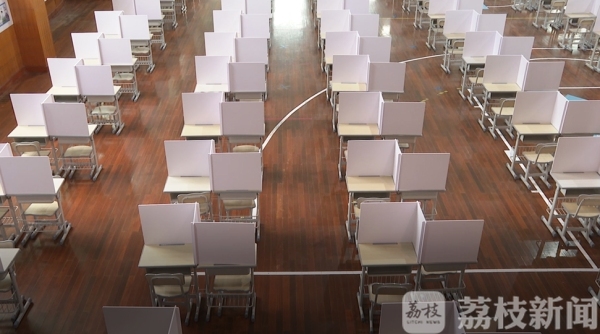 800平方米的体育馆内,400张课桌椅整齐排列,近一米宽的隔板呈“Z”字形安放在桌上。别说吃饭聊天了,连同桌是谁都看不见。这是苏州旅游与财经高等职业技术学校最新打造的食堂。每组课桌椅间隔一米,保证学生就餐时相对独立的空间,而进入食堂也有着严格的消毒程序。