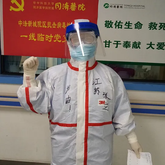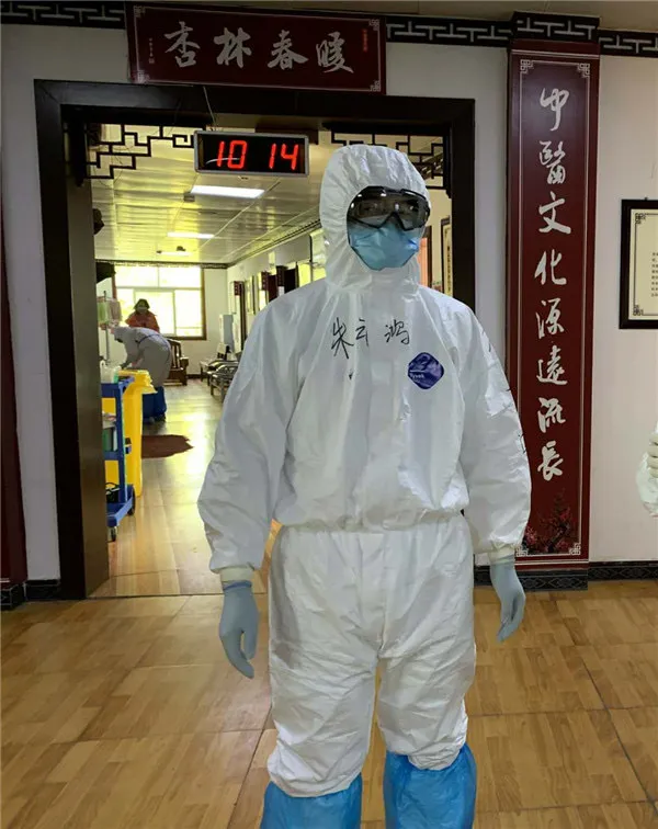 朱云鸿,男,1972年生,江苏省中西医结合医院感染科副主任医师。作为第一批江苏援湖北医疗队队员,朱云鸿来到武汉市江夏区中医医院后,运用专业知识,和队友们一起完善医院“三区两通道”建设,确保不出现医务工作者感染的情况。